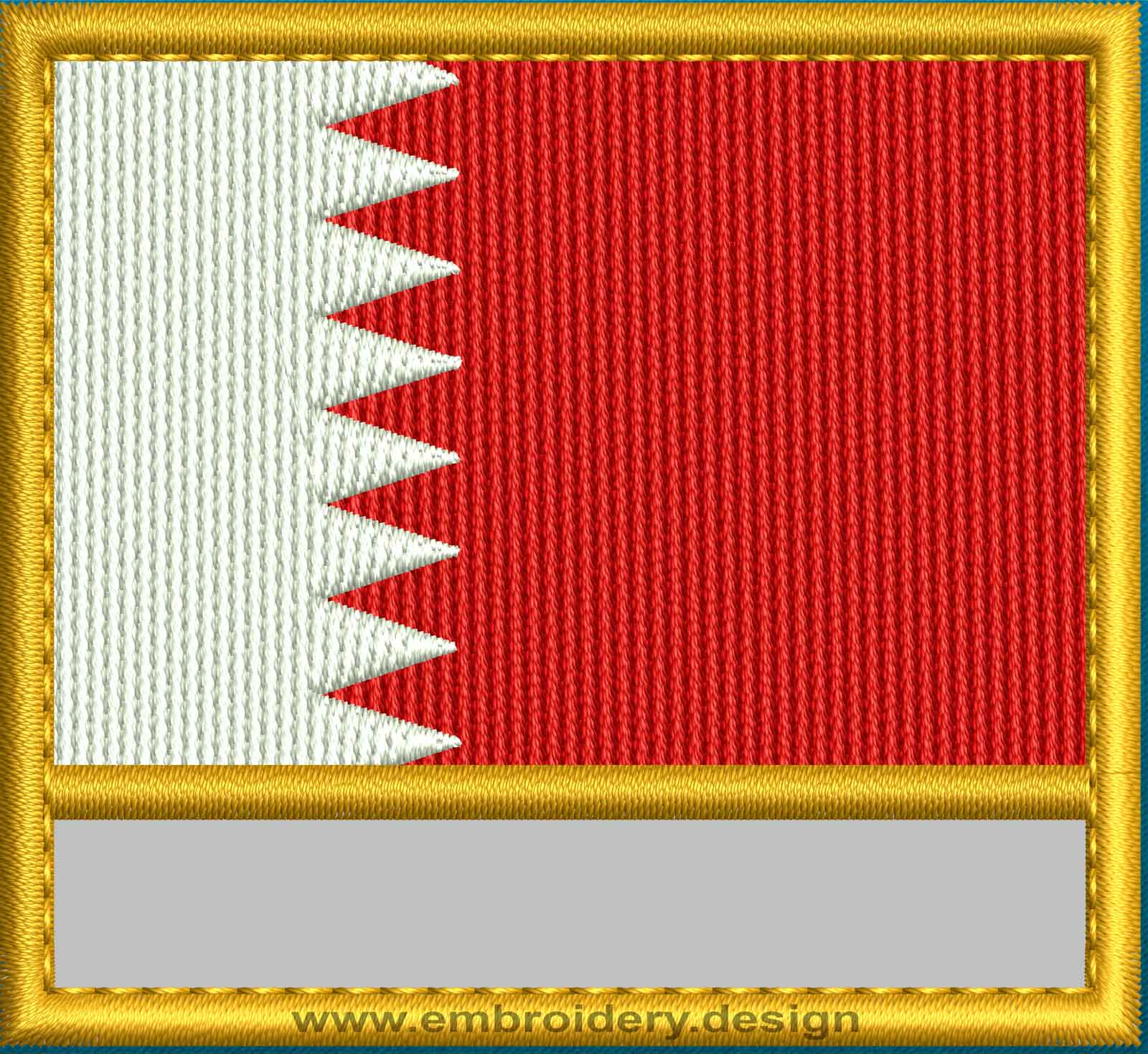 Description picture Flag Bahrain Blank Box Gold Trim Asia, which illustrates appearance embroidery design.