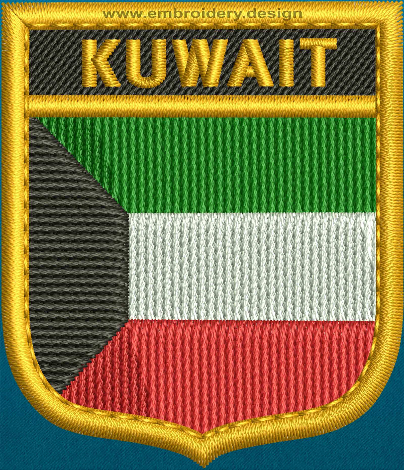 Description about image Flag Kuwait Shield Gold Trim Asia, which illustrates the appearance of embroidery design.